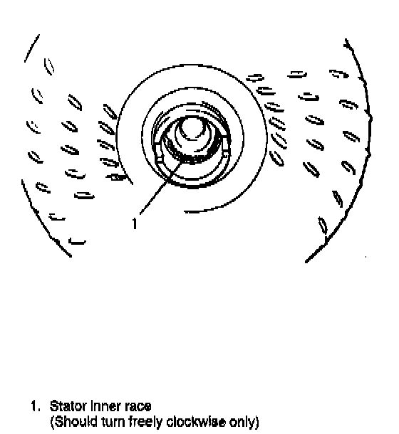 Under above conditions, if the converter has been removed from the transmission, the stator roller clutch can be checked by inserting a finger into the splined inner race of the roller clutch and trying to turn the race in both directions. The inner race should turn freely clockwise, but be heavy to turn counterclockwise.