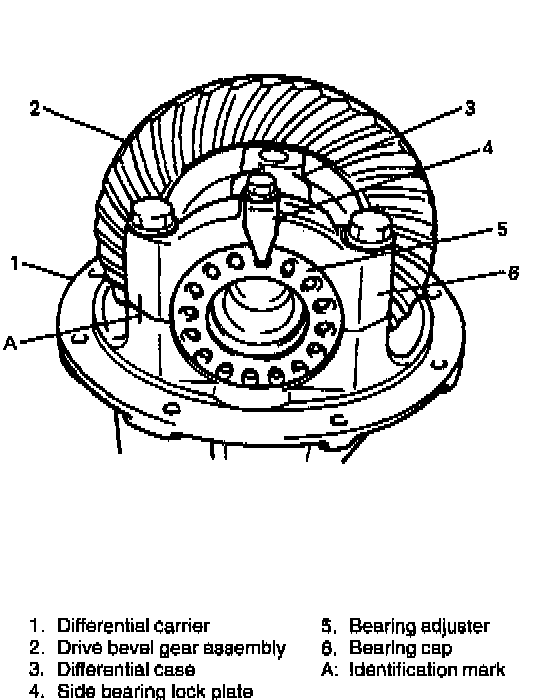 1. Hold differential assembly securely and put identification marks on differential side bearing caps.