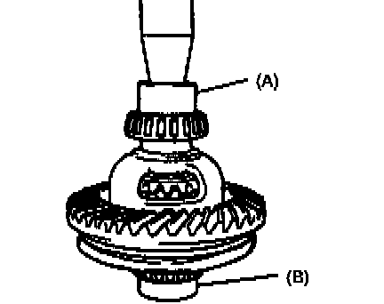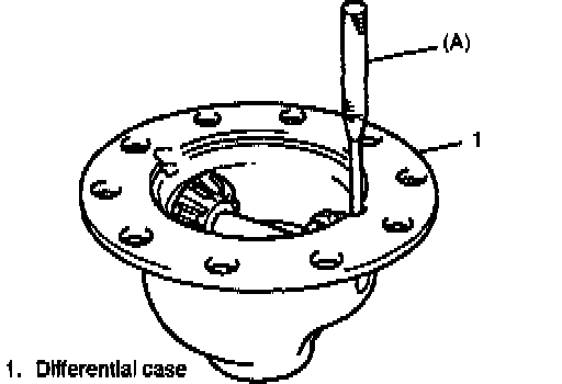 3. Drive out spring pin with special tool (A) and hammer and disassemble differential side gears, pinions, washers and shaft in differential case.