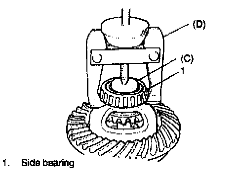 4. Remove side bearings Using special tools (C) & (D), pull out differential side bearings.