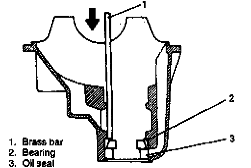 6. Using a hammer and brass bar, drive out front bearing outer race with bearing and oil seal.