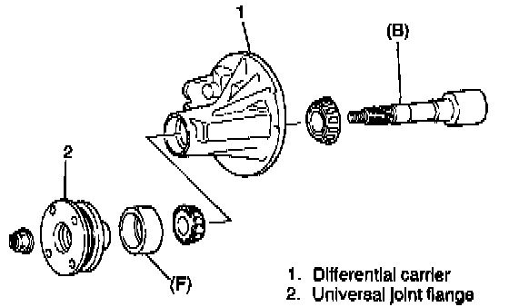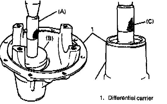 1. Install special tools with bearings and universal joint flange to differential carrier.