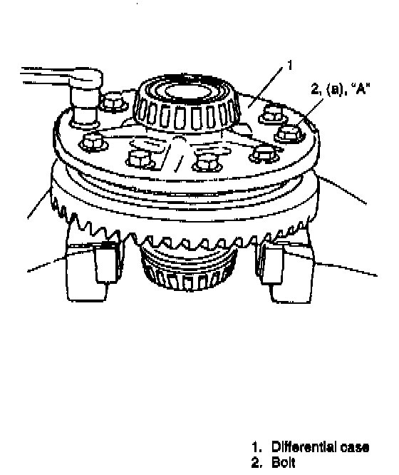5. Put bevel gear on differential case and fasten them with bolts by tightening them to specified torque.