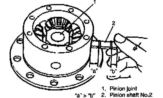 2. When installing pinion shaft No.2 (shorter) into differential case and pinion, insert its "a" side into pinion joint.