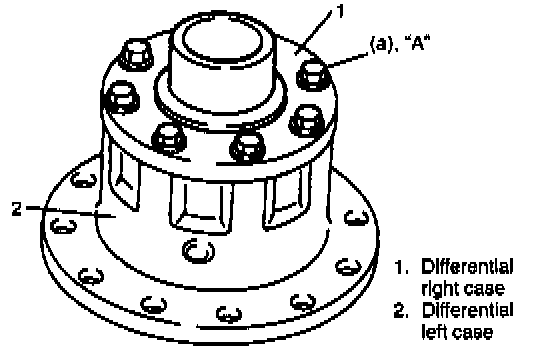 2. There are 8 bolts fastening two differential case halves together. Remove these bolts to sever right-hand case half from left-hand one, and take off right-hand one.