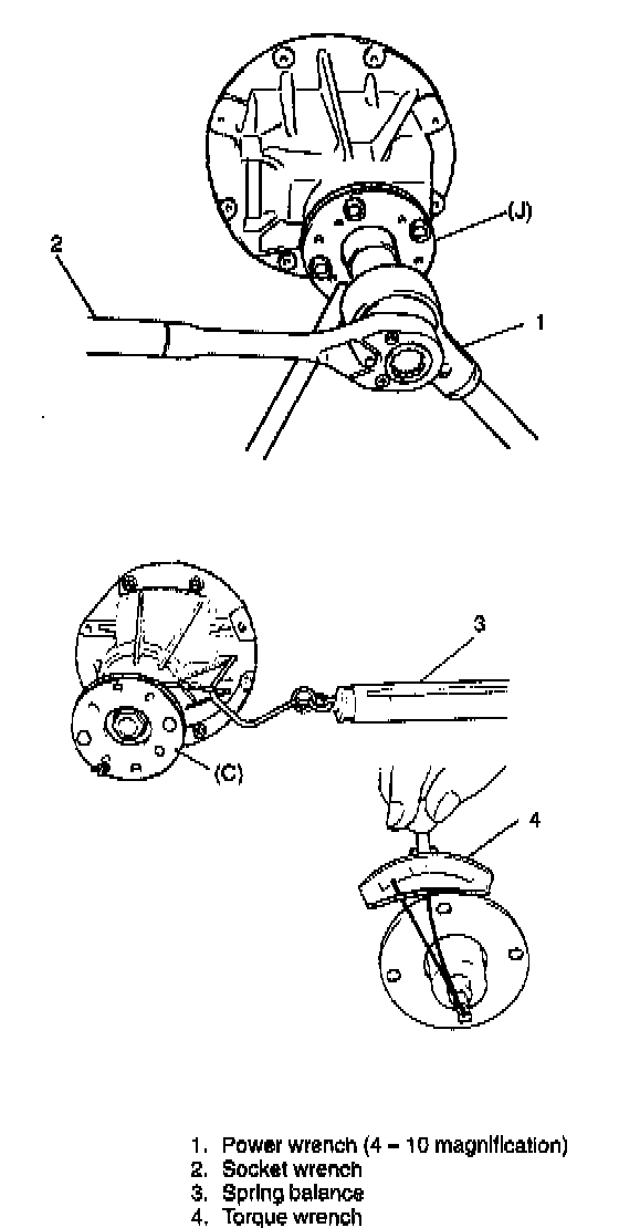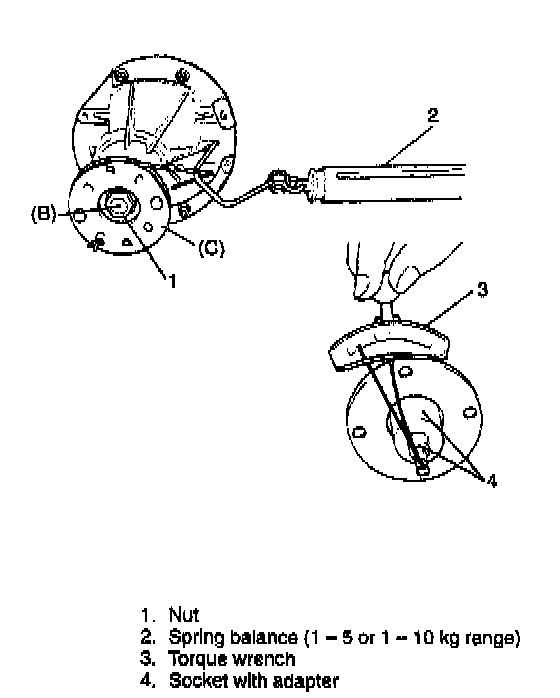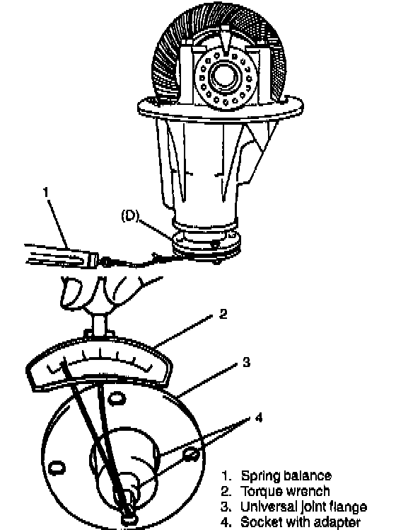 6. Measure preload of pinion with spring balance or torque wrench and check composite preload of pinion bearing and side bearing.