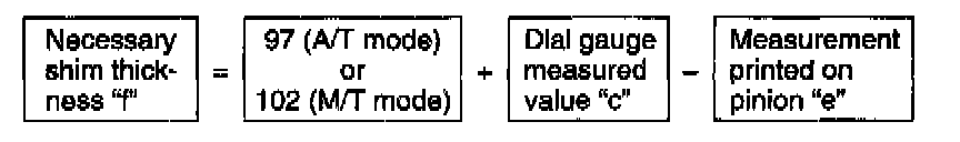 5. Obtain adjusting shim thickness by using measured value by dial gauge (which represents "c") in following equation.