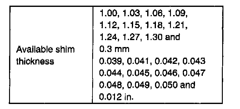 6. Select adjusting shim(s) closest to calculated value from among following available sizes and put it in place and then press-fit rear bearing.