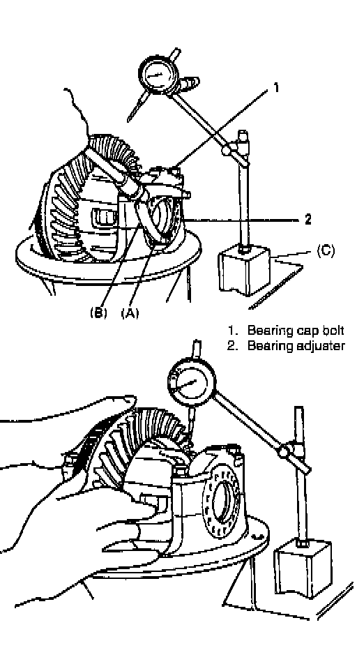 - Repeat side bearing adjustment until gear backlash and composite bearing preload are compatible within specification, if failed to obtain specified measurements first.
