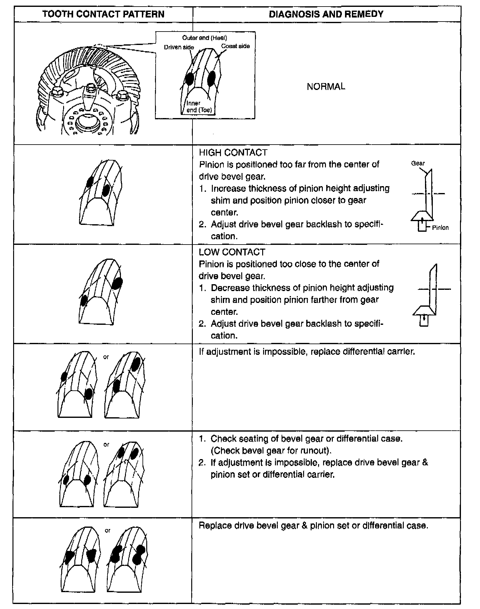 3. Bring painted part up and check contact pattern, referring to the chart. If contact pattern is not normal, readjust or replace as necessary according to instruction in chart.