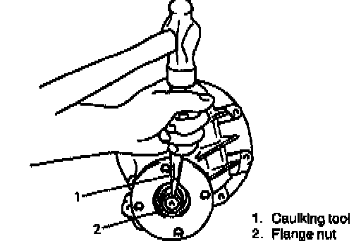9. Upon completion of gear tooth contact check in Step 8, caulk flange nut with caulking tool and hammer.