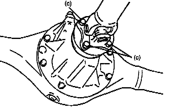 1. Clean mating surfaces of rear axle and differential assembly and apply sealant (Suzuki bond 1215) to axle side evenly.