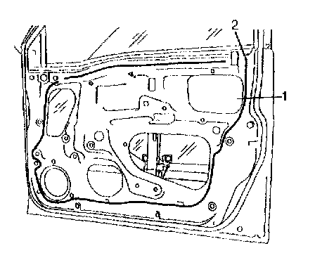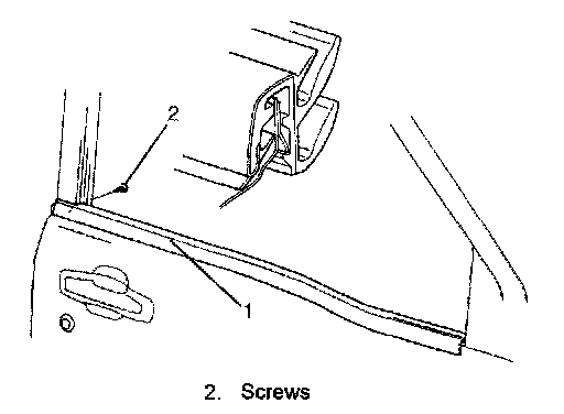 8. Remove door outside weather-strip (1).