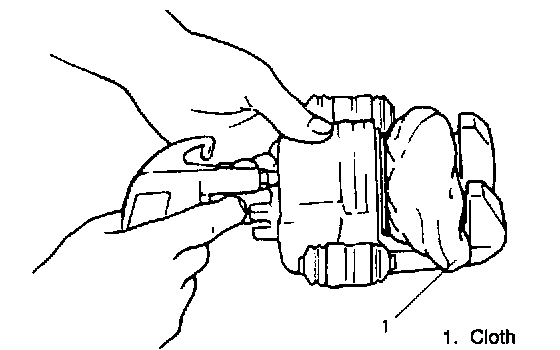 2. Blow compressed air into cylinder through bolt hole where flexible hose was fitted. With this air pressure, piston can be pushed out of cylinder.
