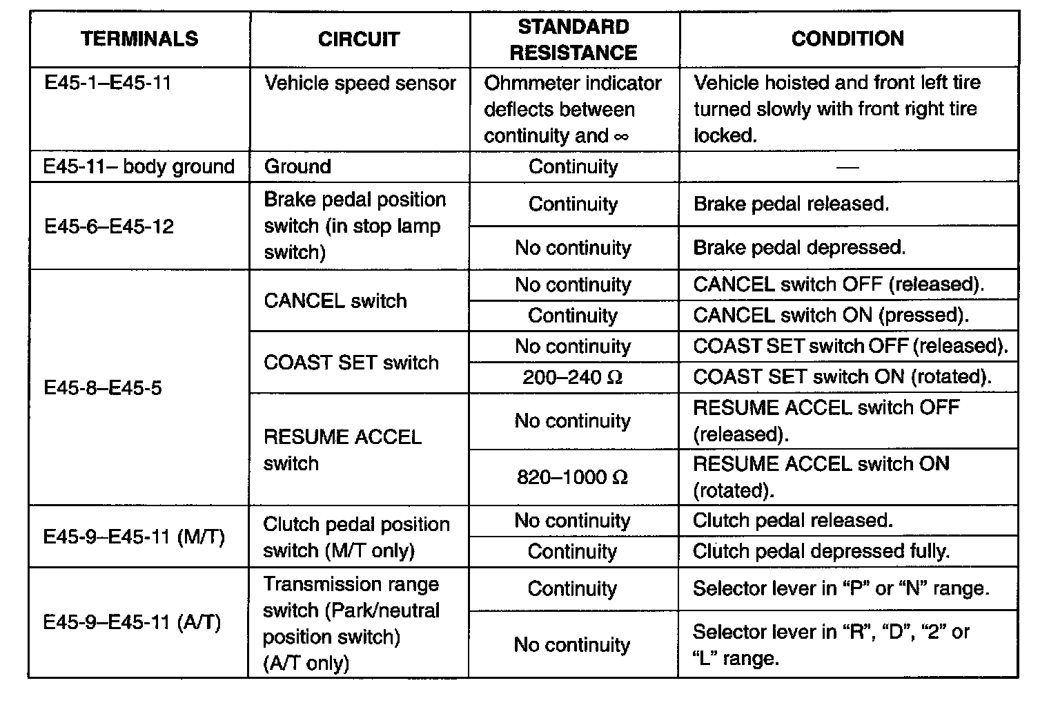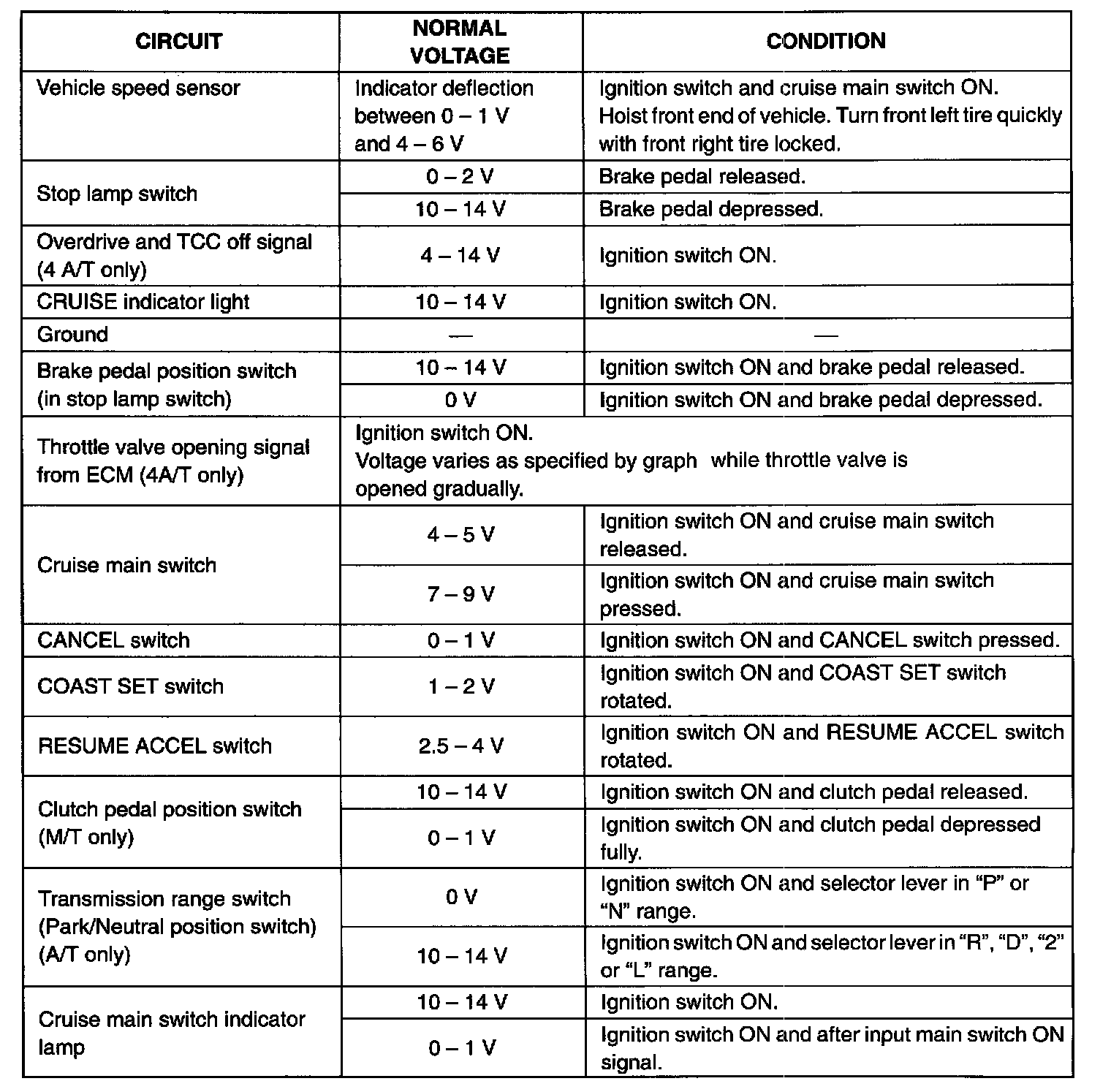 CRUISE CONTROL MODULE AND ITS CIRCUIT INSPECTION