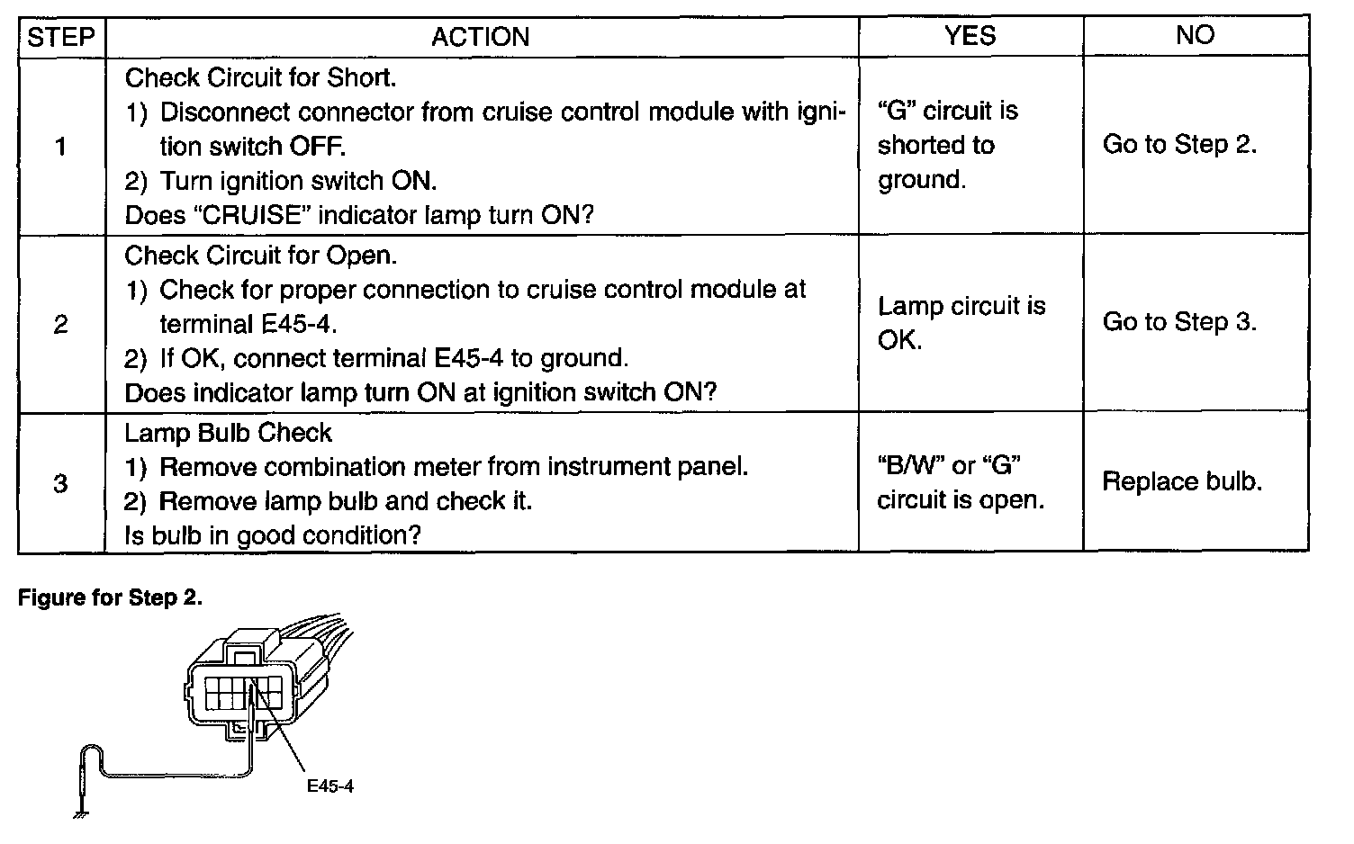Cruise Indicator Lamp Circuit Check