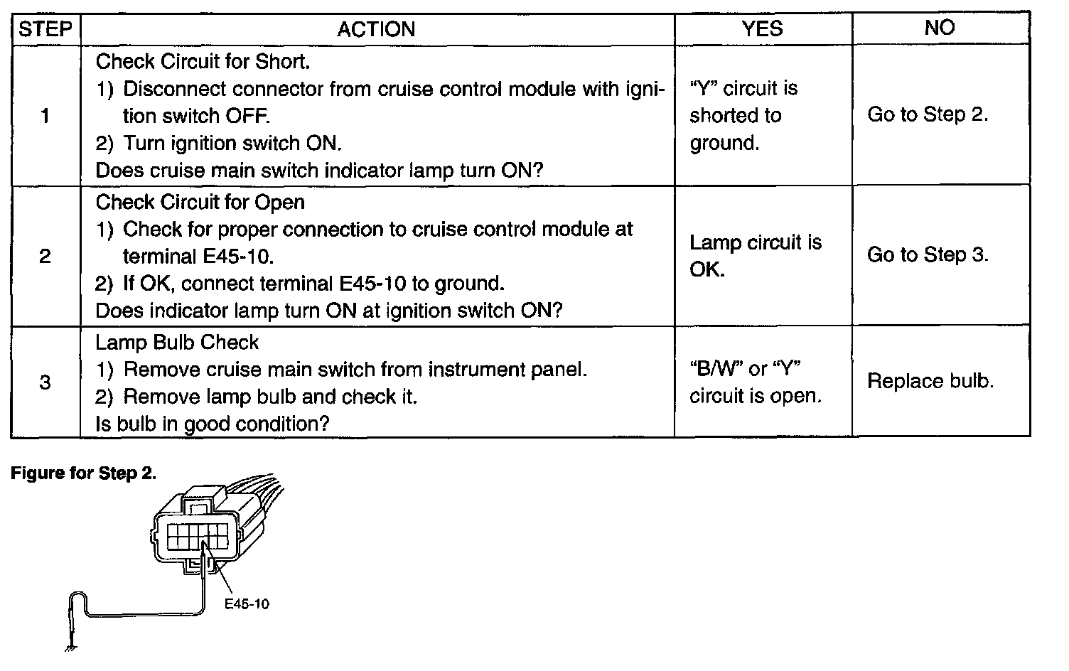 Cruise Main Switch Indicator Lamp Circuit Check