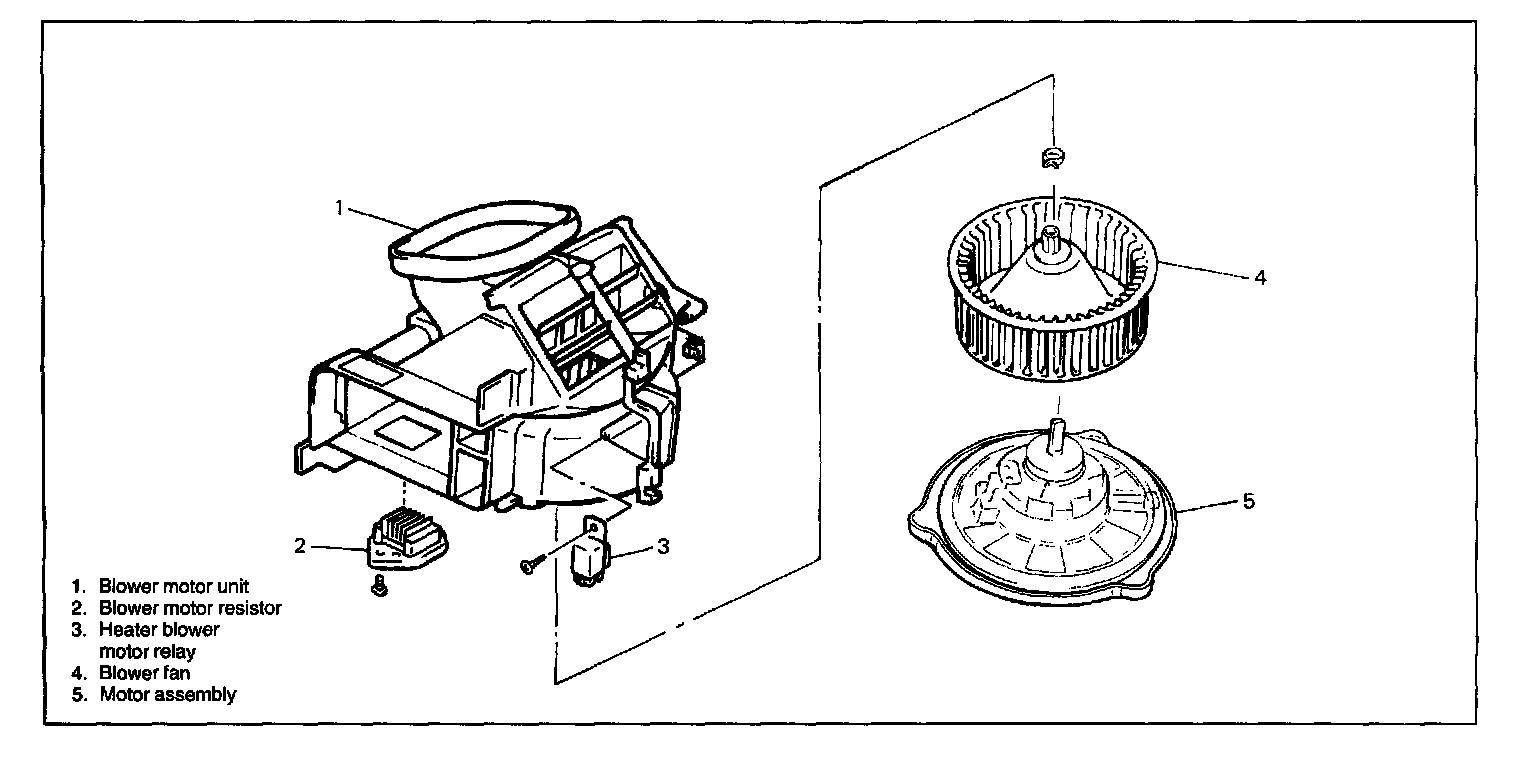 4. Disconnect blower motor, heater resistor and heater blower motor relay lead wires at couplers.