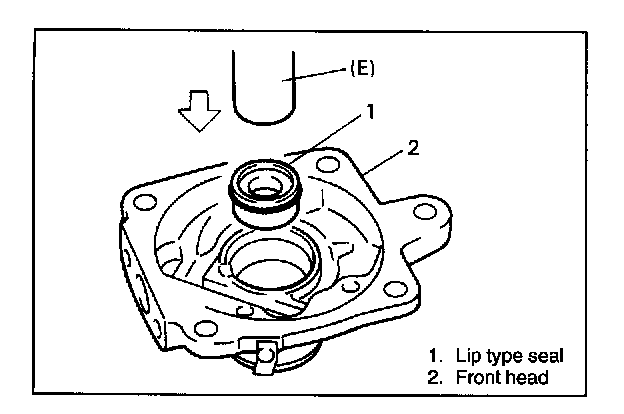 1. Press-fit lip seal into front head using special tool (E).
