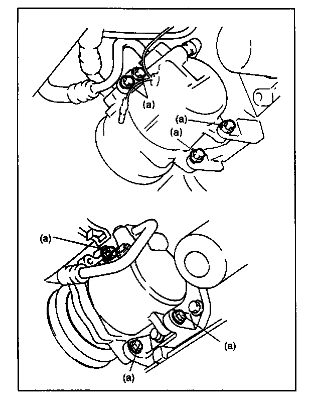 9. Remove compressor with magnet clutch ass'y from its mounts.
