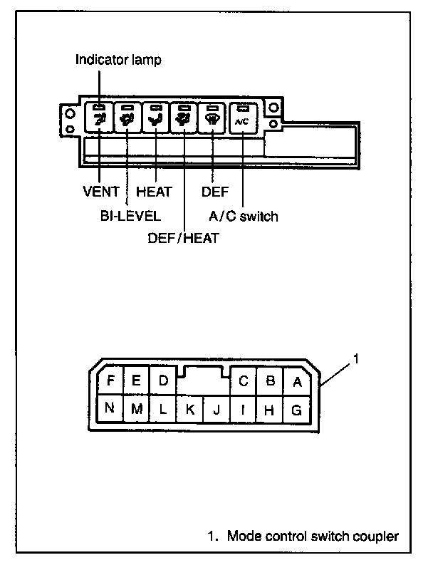 Mode Control Switch- Check if continuity exists between each pair of terminals listed below when mode control button is pressed.