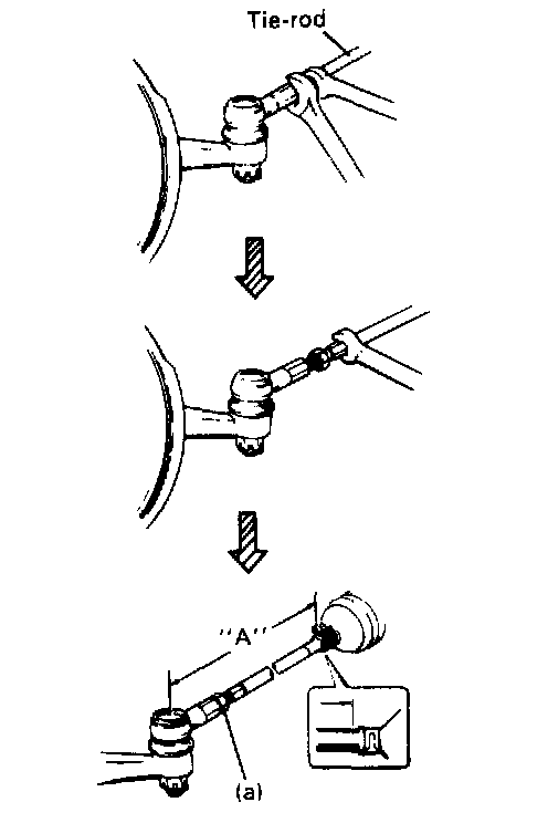 If steering angle is not correct, check if right and left tie rods are equal in length ("A").