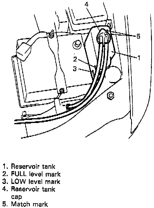 Fill radiator to the base of radiator filler neck and reservoir tank to "FULL" level mark. Reinstall reservoir tank cap and align match marks on tank and cap.
