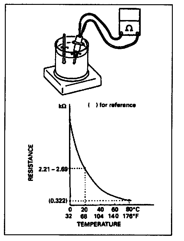 Immerse temperature sensing part of AT sensor in water (or ice) and measure resistance between sensor terminals white heating water gradually.