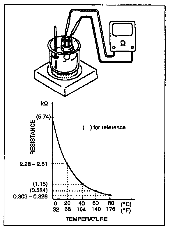 Immerse temperature sensing part of ECT sensor in water and measure resistance between sensor terminals while heating water gradually.
