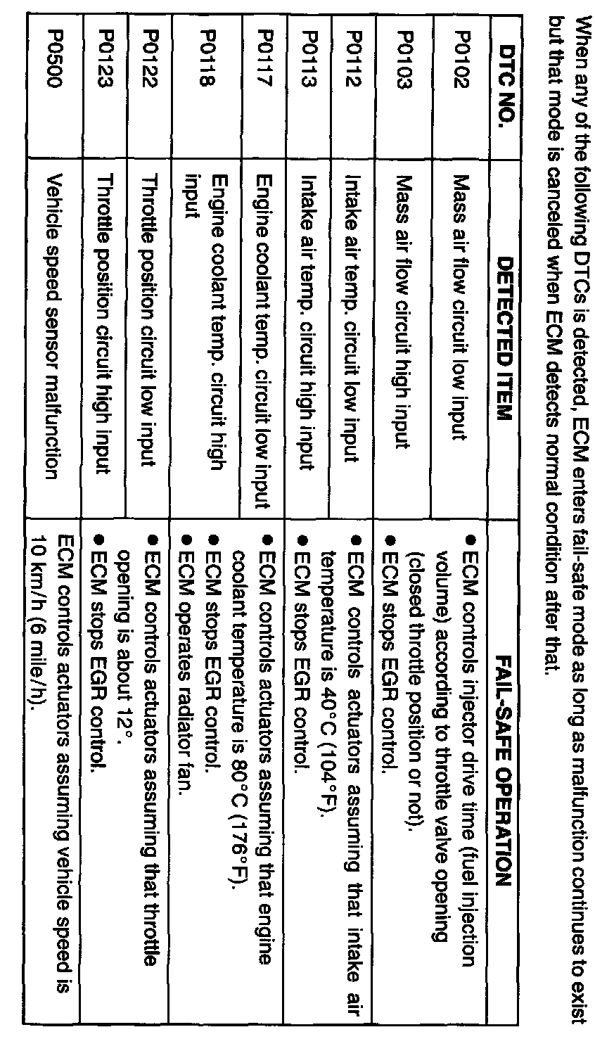 Fail-Safe Table (P0102 - P0500):