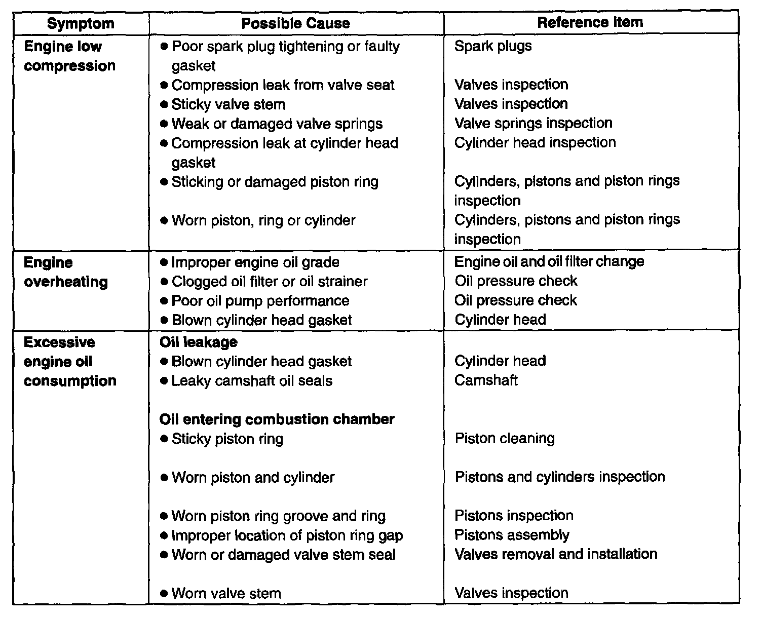 Engine Mechanical Diagnosis Table (Part 2 Of 2):