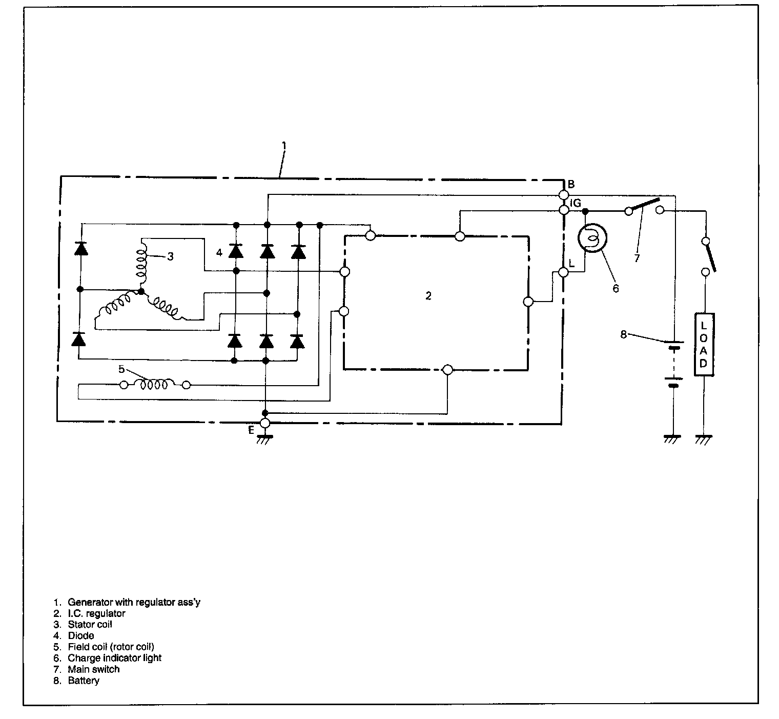 The generator is a small and high performance type with an IC regulator incorporated.