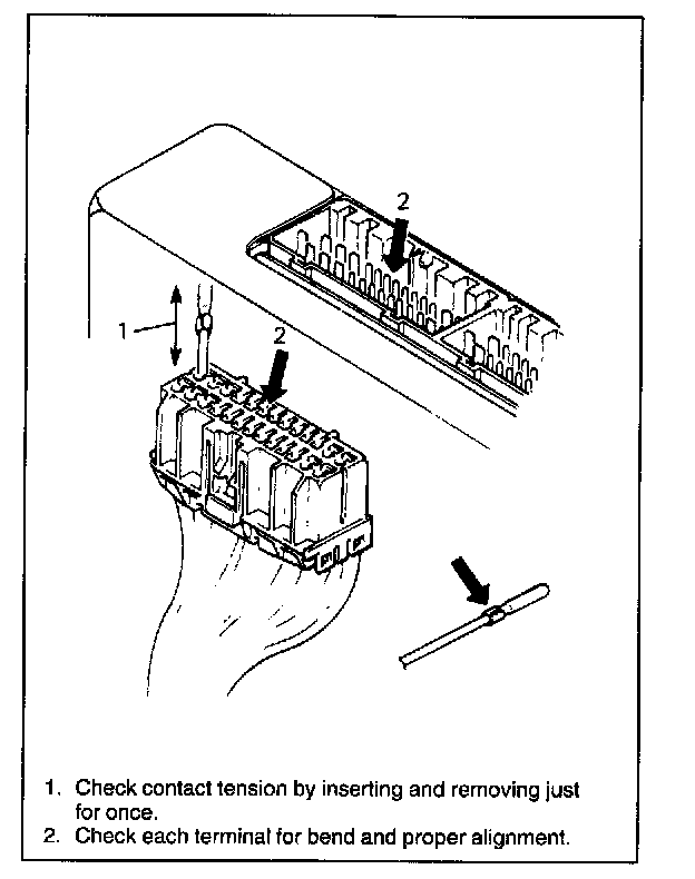 Check each connector terminal in problem circuits carefully to ensure good contact tension by using the corresponding mating terminal.