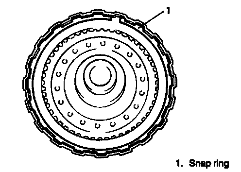 - Do not align opening in snap ring with lug of forward clutch return spring subassembly at its retainer section.