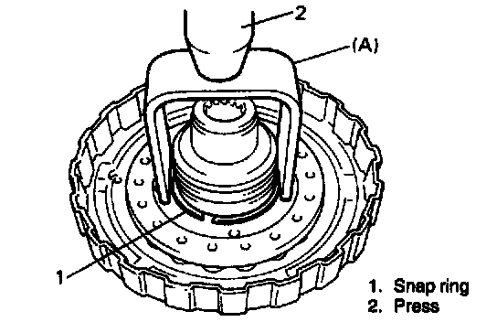 CAUTION: Be careful when applying pressure, for over pressure will cause plate section of forward clutch return spring subassembly to deform.
