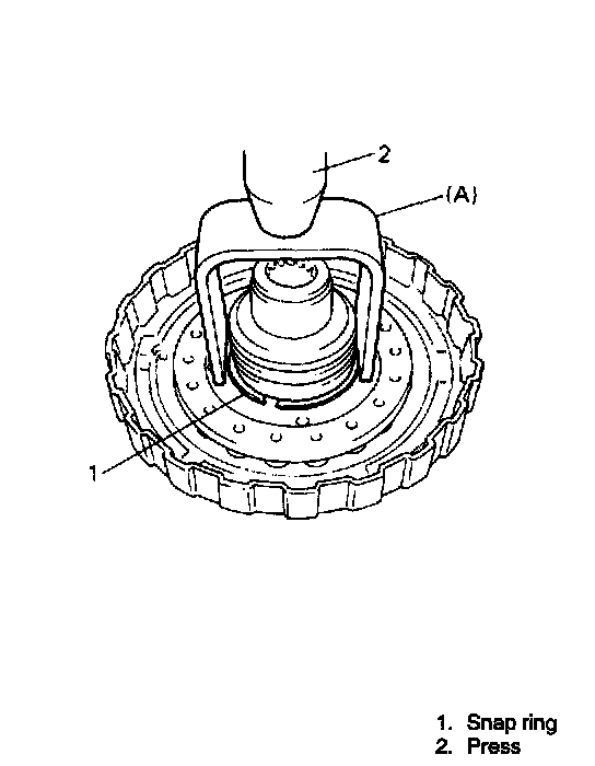 3. Using special tool and hydraulic press, compress forward clutch return spring subassembly and remove snap ring.