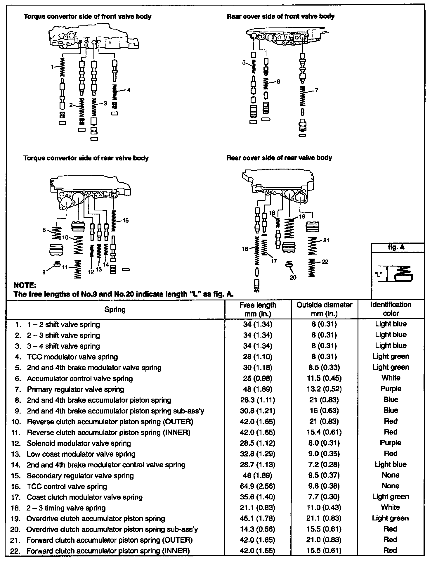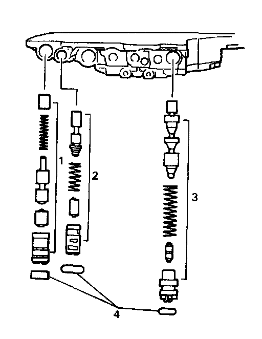 1. Install valves and compression springs to torque convertor side of front valve body.