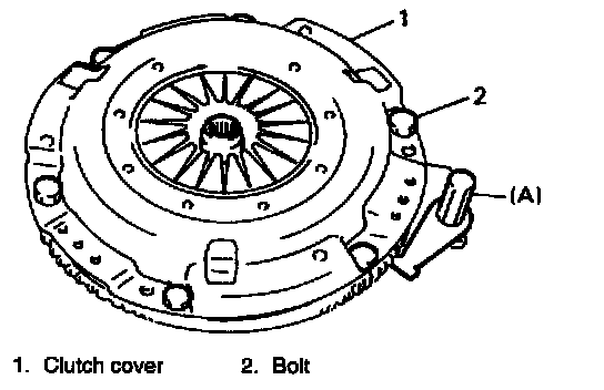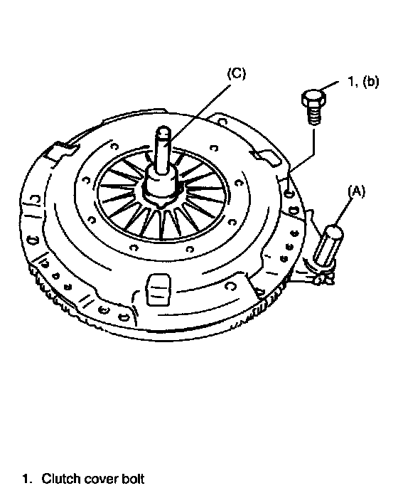 1. Hold flywheel stationary with special tool and remove clutch cover bolts, clutch cover and clutch disc.