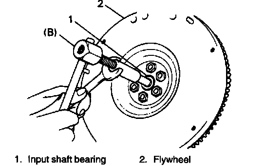 NOTE: Turn crankshaft a little through flywheel gear while inserting transmission input shaft to clutch disc until splines mesh.