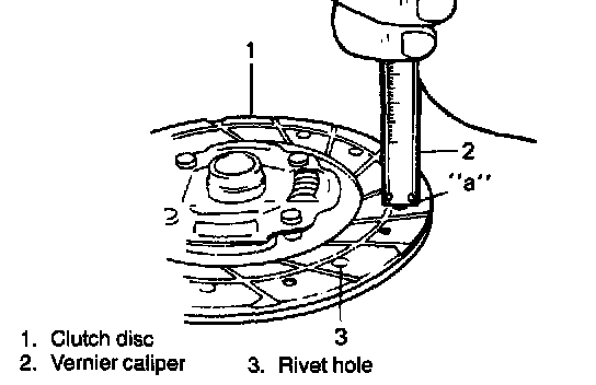 If depression is found to have reached service limit at any of holes, replace disc assembly.