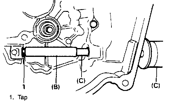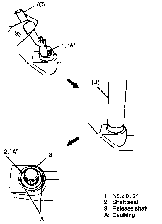 4. Drive out No.2 bush by using special tool and hammer. Release shaft seal will also be pushed out.
