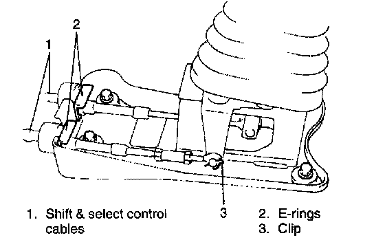 2. Remove E-rings and clips from shift & select control cables.
