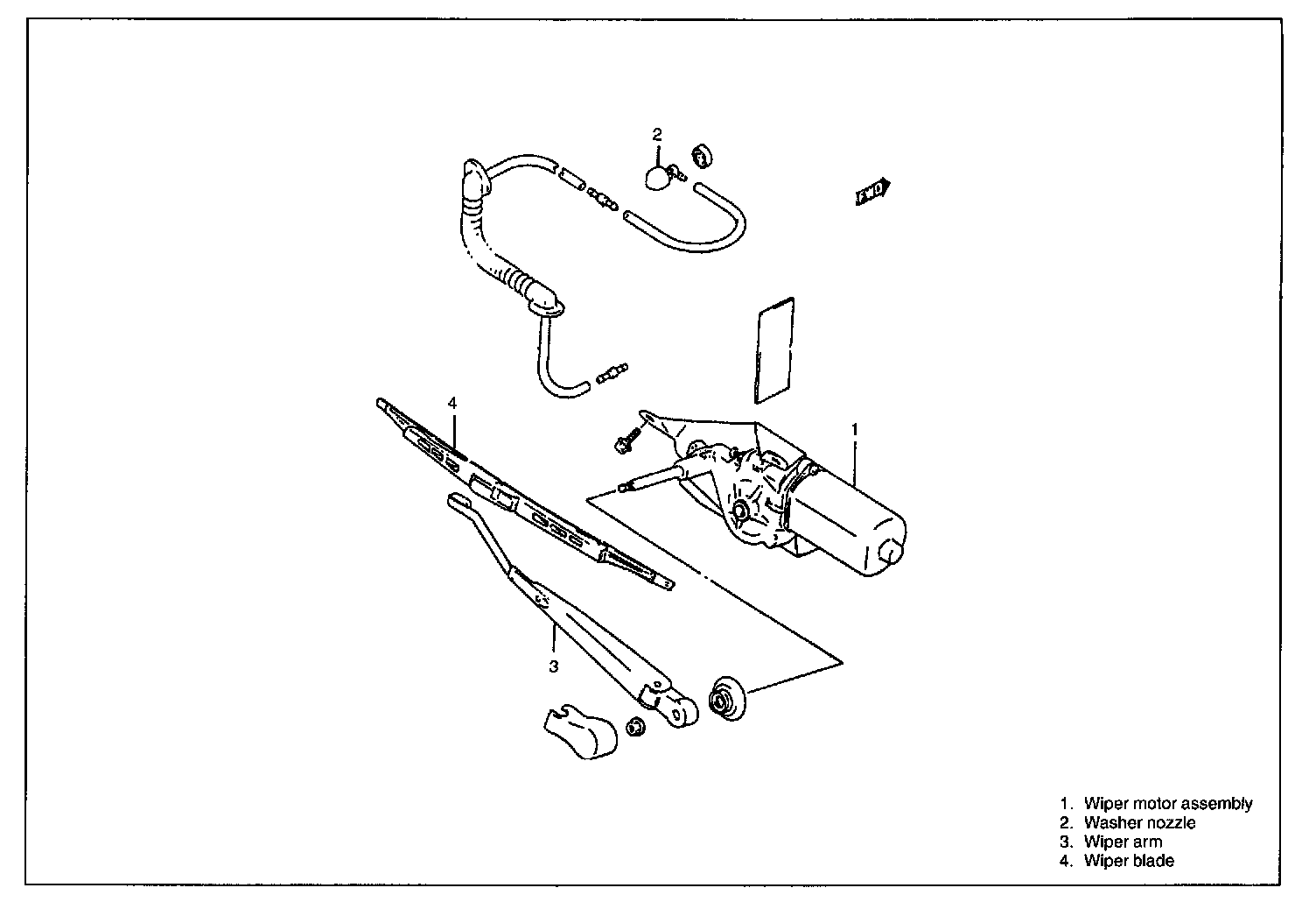 The rear window wiper is of the one-speed type, and its washer is equipped with a separate-type washer pump.