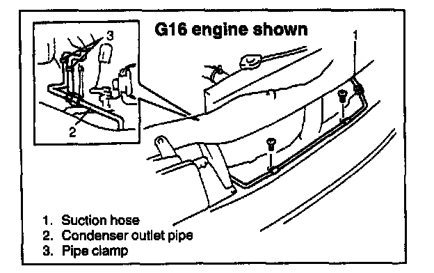 Disconnect suction pipe and receiver/dryer outlet pipe at each joint.