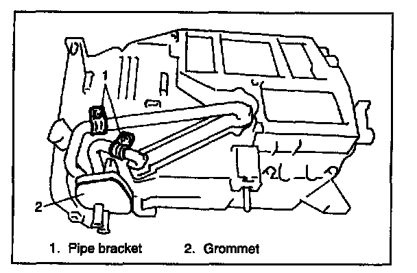 11. Remove heater core pipe clamps and grommet.