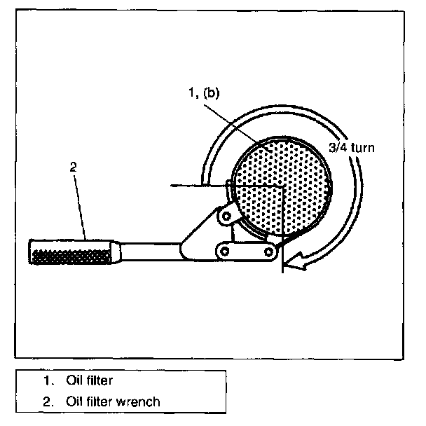 5. Tighten the filter 3/4 turn from the point of contact with the mounting surface using an oil filter wrench.