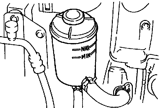 POWER STEERING FLUID LEVEL CHECKWith engine stopped, check fluid level indicated on oil tank, which should be between "MAX" and "MIN" marks. If it is lower then "MIN" mark, fill fluid up to "MAX" mark.