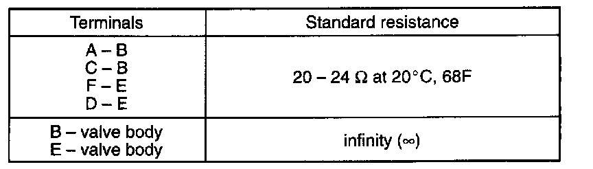 1. Check resistance between following terminals of EGR valve in each pair.