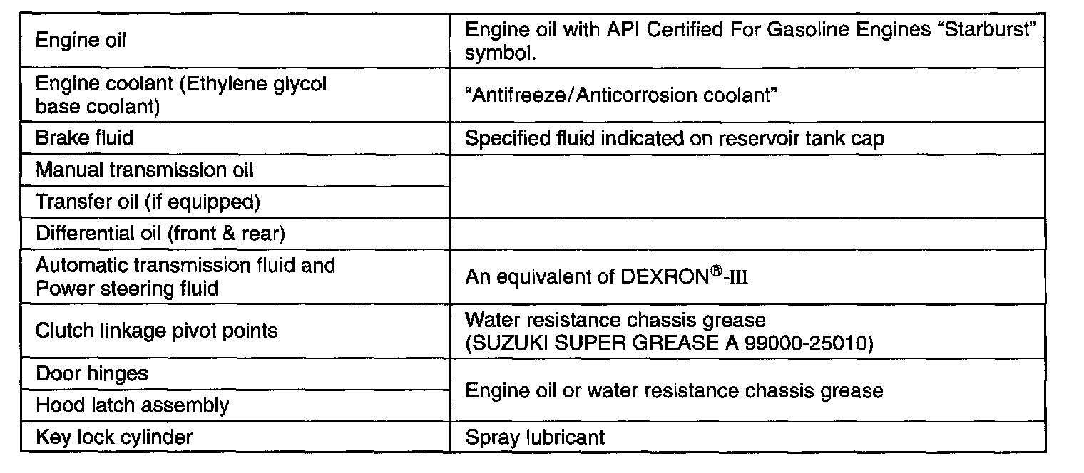 Recommended Fluids and Lubricants