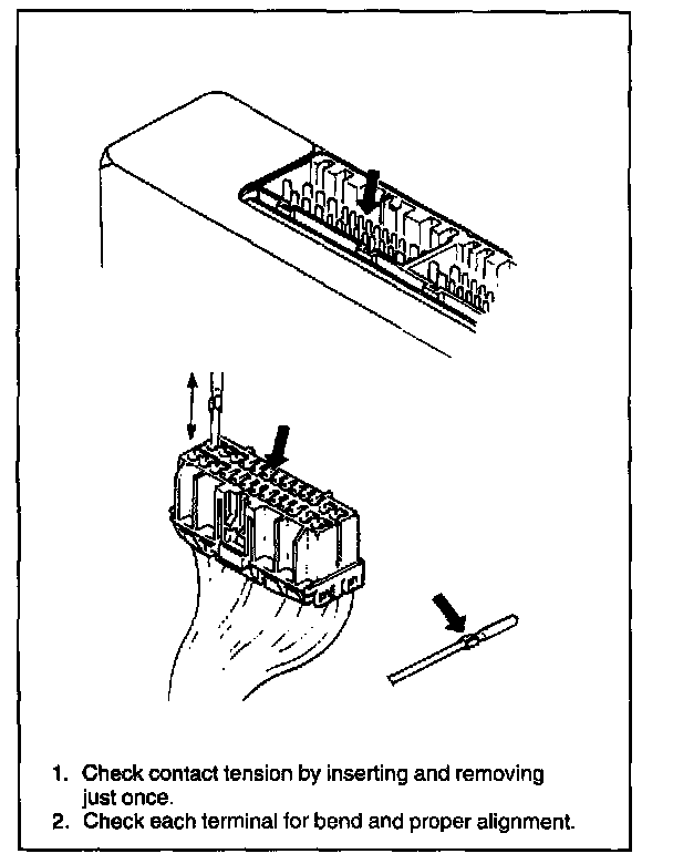 Check each connector terminal in problem circuits carefully to ensure good contact tension by using the corresponding mating terminal.